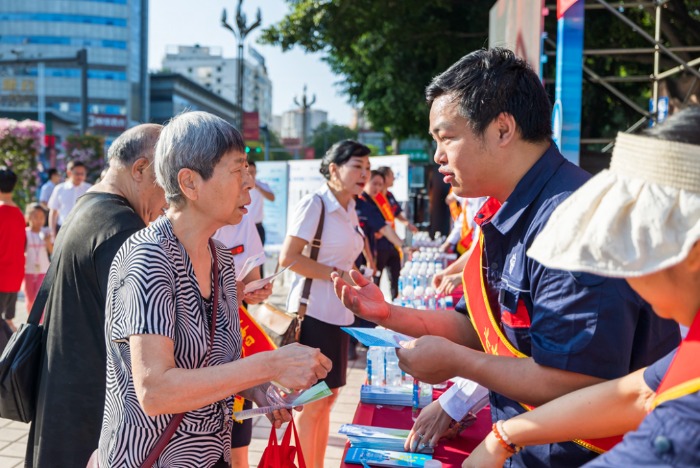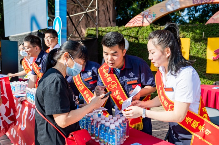 上午8時,設置在竹湖園廣場的“520”便民服務點,熱鬧不已,炳草崗水廠、怡康飲用水有限公司共產(chǎn)黨員服務隊、青年志愿者服務隊的隊員們,禮貌熱情地向群眾介紹集團公司“520”服務品牌建設理念,發(fā)放“520”民生服務承諾、現(xiàn)行水價政策、用水節(jié)水常識等宣傳資料,對群眾關心的水質、水壓、抄表、收費等問題進行耐心細致的逐一解答。