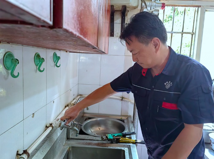 仁和水業(yè)共產(chǎn)黨員服務隊來到仁和寶靈小區(qū)19棟住戶楊成蓮家中開展上門服務,解決了楊女士家中水龍頭漏水問題,楊女士連連感謝。在南山花園小區(qū),炳草崗水廠共產(chǎn)黨服務隊為一餐館更換了水龍頭,贏得了餐館老板的點贊。