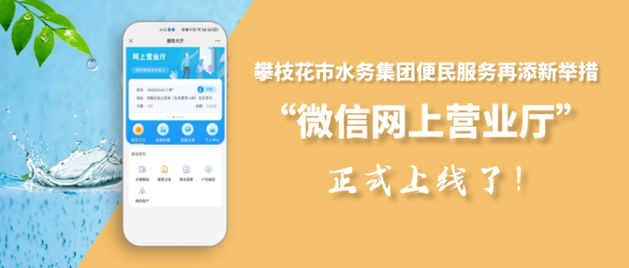 新年伊始,攀枝花市水務(wù)集團(tuán)便民服務(wù)再添新舉措,“微信營業(yè)廳”(以下簡稱“微網(wǎng)廳”)正式開通運(yùn)行,用戶只需關(guān)注二維碼,動(dòng)動(dòng)手指就可以在“微信營業(yè)廳”辦理水費(fèi)繳納、用水報(bào)裝、更名過戶、信息查詢等各項(xiàng)用水業(yè)務(wù),為您提供更加專業(yè)、高效的優(yōu)質(zhì)服務(wù),實(shí)現(xiàn)辦事“免跑腿”、溝通“零距離”。下面,跟隨小編一起去看看“微網(wǎng)廳”的操作流程吧!